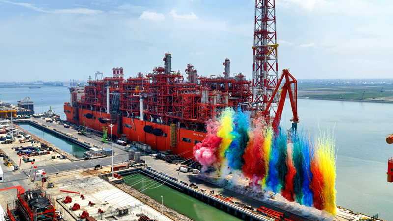 我國自主建造的最大噸位、最大儲(chǔ)氣量的新型海上浮式液化天然氣生產(chǎn)裝置NGUYA FLNG(恩古雅海上浮式液化天然氣裝置)在江蘇南通(啟東)呂四港啟航,巨力索具5000T吊梁大展風(fēng)采。