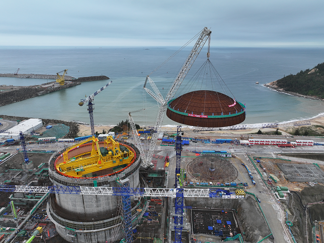 4月29日8時8分,中廣核廣東陸豐核電項目5號機組穹頂完成吊裝,巨力索具鋼絲繩索具產品全程保障該項目吊裝順利進行,此次吊裝成功標志著該臺“華龍一號”核電機組從土建施工階段全面轉入設備安裝階段。
