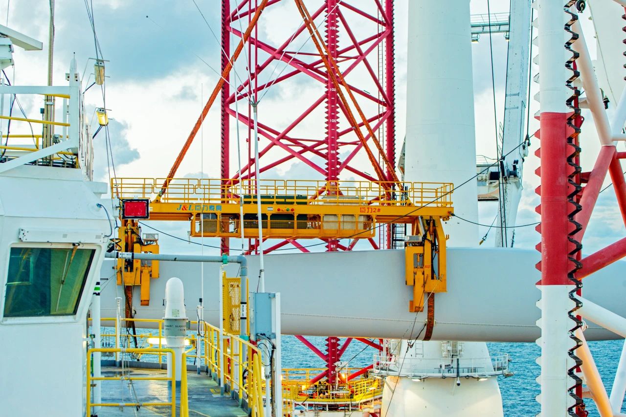 2021年9月16日,汕頭某海域,巨力索具研發的國內首臺55噸大兆瓦全角度旋轉式海上單葉片吊具,剛剛面世,便展開連續作業,順利完成5臺風機的葉片吊裝,經受住了考驗,完美的展示了巨力吊具的高可靠性、高安全性及高效率。