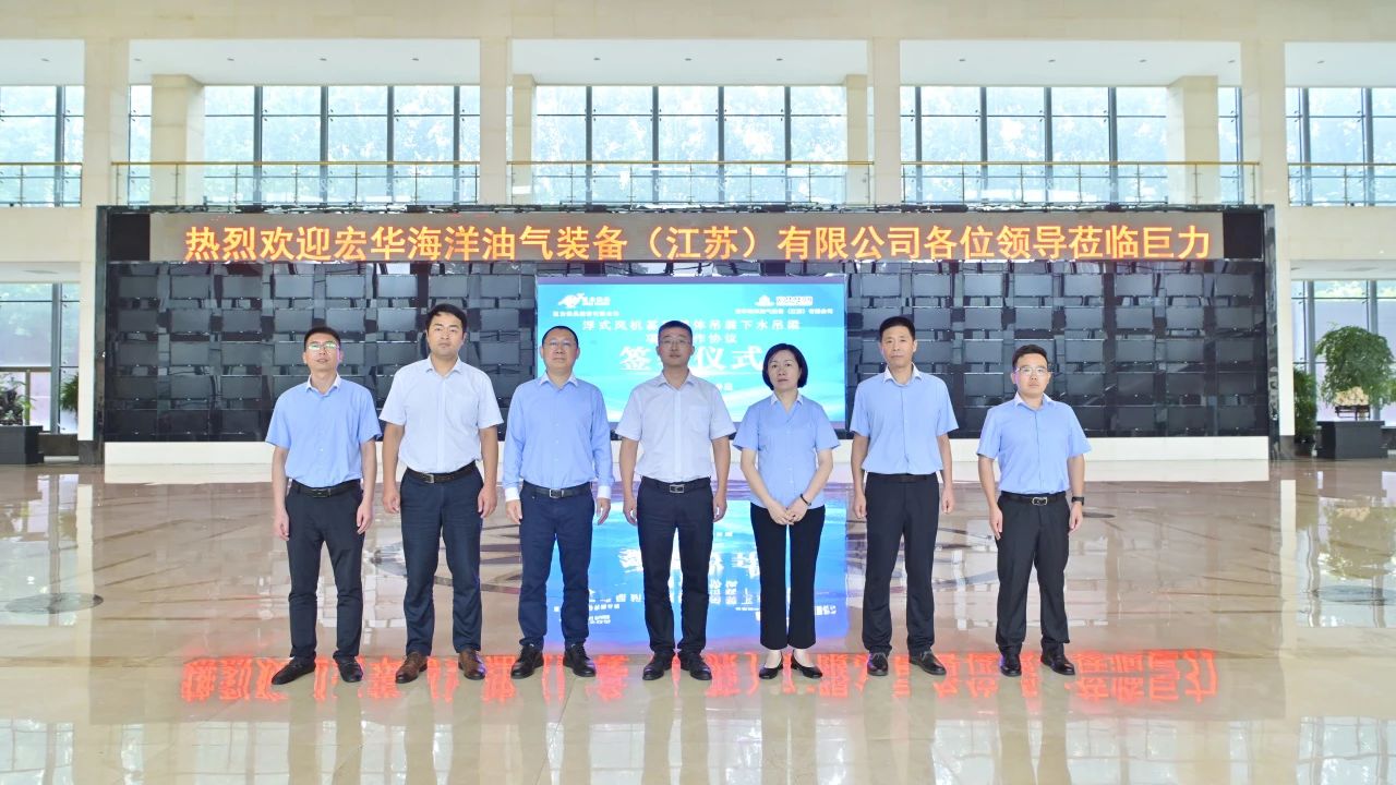8月19日,巨力索具與宏華海洋油氣裝備(江蘇)有限公司(以下簡稱宏華海洋)就“浮式風機基礎整體吊裝下水吊梁”簽署項目合作協議。巨力索具常務副總裁李彥英、宏華海洋副總經理呂巖分別代表雙方簽署協議。巨力索具副總裁張海波、宏華海洋技術副部長李博參加會議。