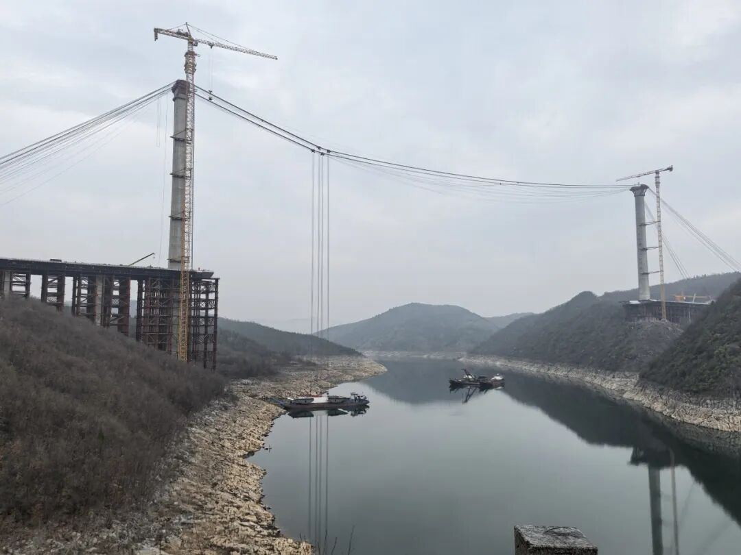 丹江小三峽特大橋地處鄂豫交界的丹江口水庫庫區(qū),是連接南北交通的重要節(jié)點(diǎn)工程。大橋全長(zhǎng)919米,主跨536米,是目前國(guó)內(nèi)最大跨徑跨峽谷分離式混合梁斜拉橋,橫跨陡峭峽谷,施工環(huán)境復(fù)雜,傳統(tǒng)吊裝設(shè)備難以滿足高空、大跨度、重載荷的作業(yè)需求。巨力索具針對(duì)項(xiàng)目特點(diǎn),量身定制了雙塔三跨式纜索起重機(jī)系統(tǒng),其跨度、起重量及智能化控制水平均達(dá)到行業(yè)領(lǐng)先標(biāo)準(zhǔn)。