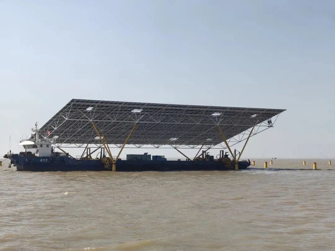 海上光伏整體結(jié)構(gòu)浮托運輸調(diào)節(jié)裝備已經(jīng)成功應(yīng)用于國華HG14海上光伏項目上,國華HG14海上光伏項目是目前全球最大的開放式海上光伏項目,該項目首次應(yīng)用浮托法安裝,通過本裝備解決了常規(guī)作業(yè)方式無法在淺海安裝的難題,提升了安裝效率。得到了客戶的認可。