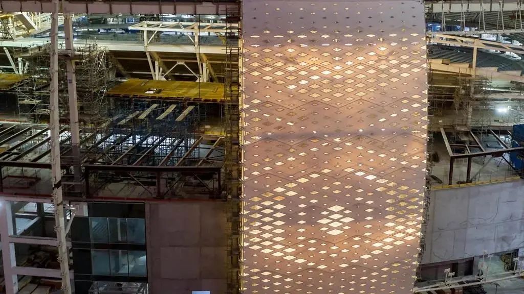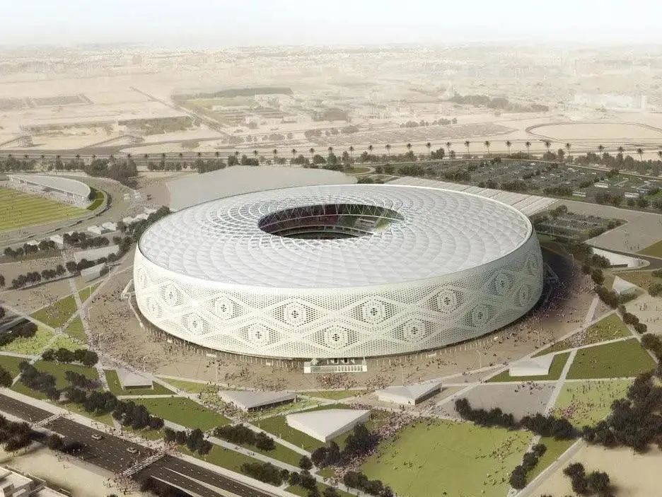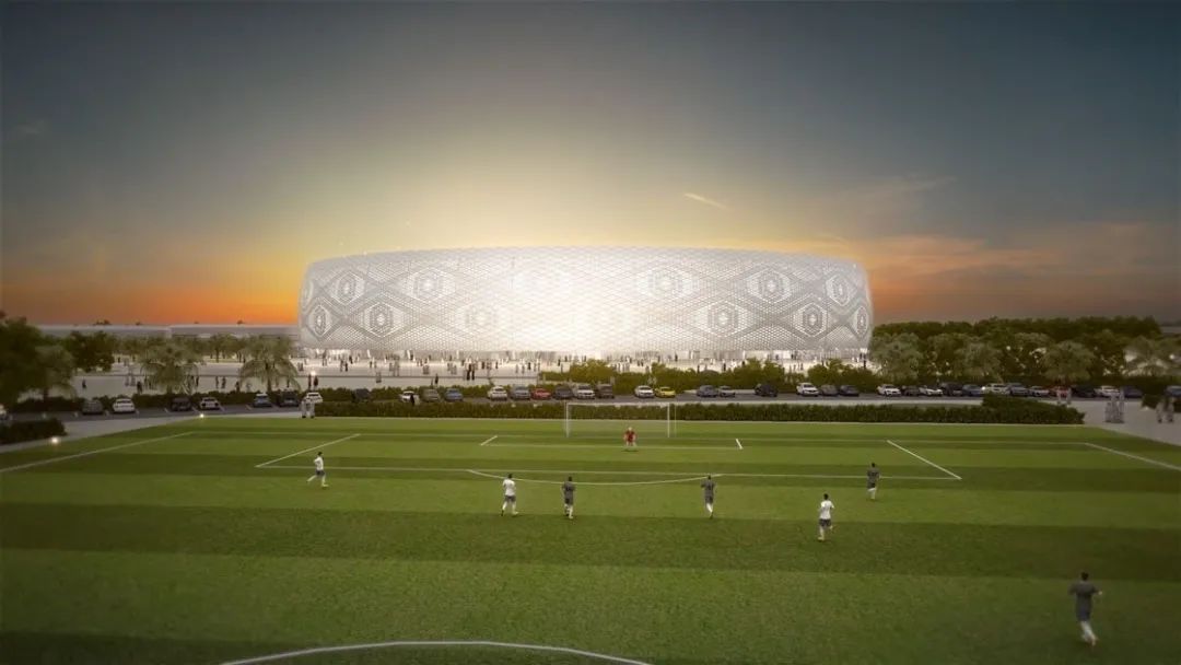 該球場是由卡塔爾建筑師Ibrahim M. Jaidah設計的,其設計靈感源自于阿拉伯男子佩戴的白色針織帽(Gahfiya),獨特的鏤空編織圖案極具阿拉伯特色,將阿拉伯當地風情展現(xiàn)得淋漓盡致。