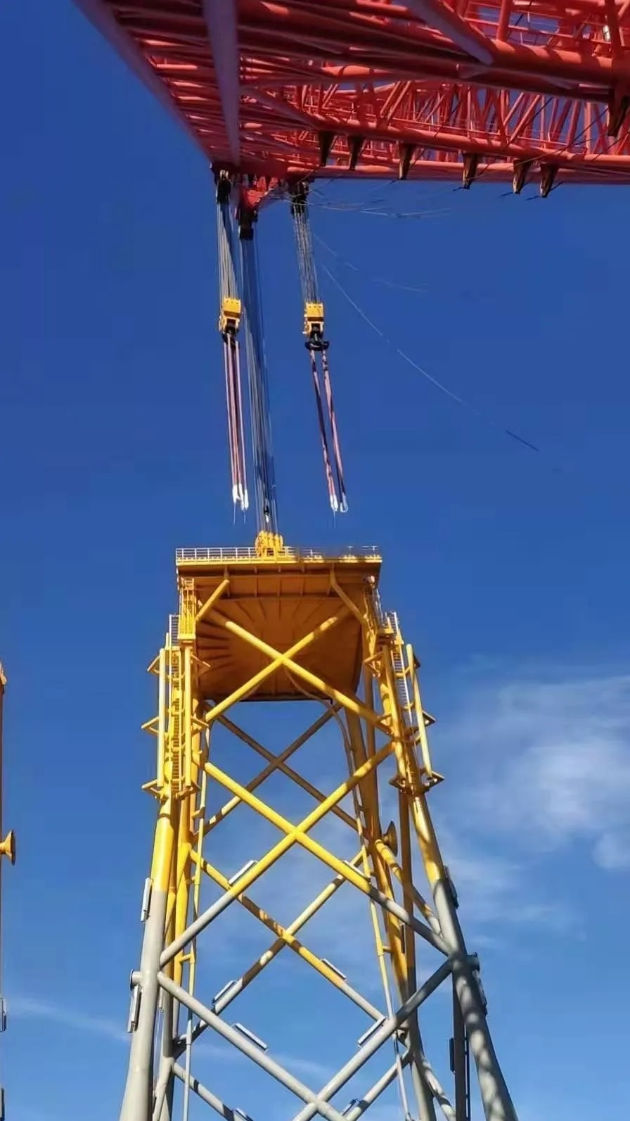 近日,惠洲海域亞洲第一吊高“秦航工2300”自航起重船初試鋒芒,成功吊裝惠州海域風場今年首根鋼結構導管架。