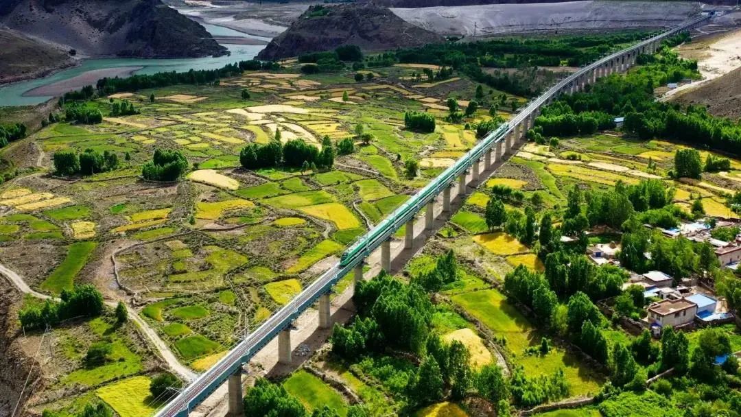 拉林鐵路正線全長435.48公里,設計時速160公里,是西藏首條電氣化鐵路。藏木雅魯藏布江雙線特大橋全長525.1米,主拱跨徑430米,橋址處海拔3350米,是目前世界上海拔最高、跨度最大的鐵路鋼管混凝土拱橋,也是雅魯藏布江上首座“一跨過江”的鐵路橋梁。