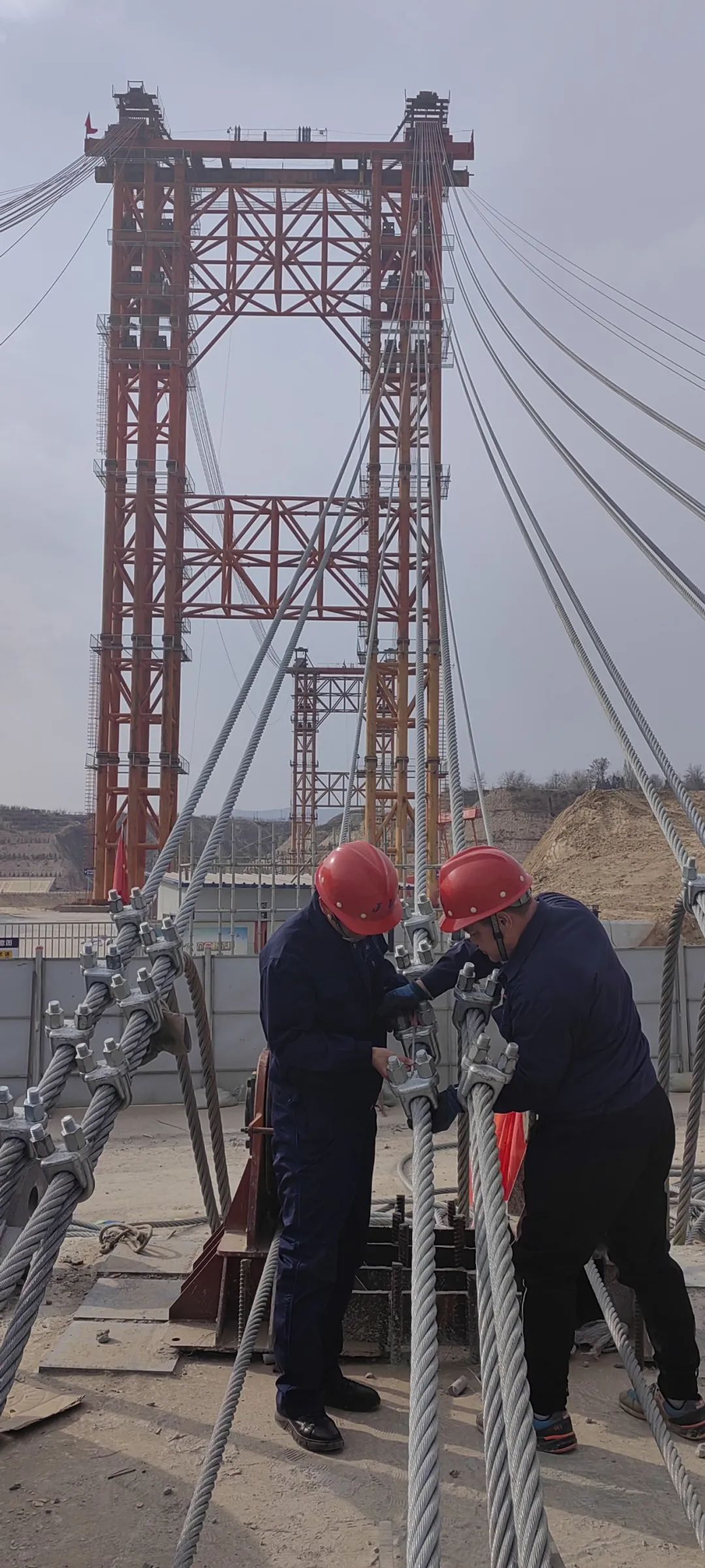 節后開工第一天,廣西橫州特大橋項目現場一派熱火朝天。巨力索具主要負責該項目纜索與鋼箱梁施工安裝,為確保施工進度,浦江纜索公司員工堅守崗位,嚴守職責,克服環境等困難,穩步推進各項作業進度,以高質量工程建設助力公司高質量發展。
