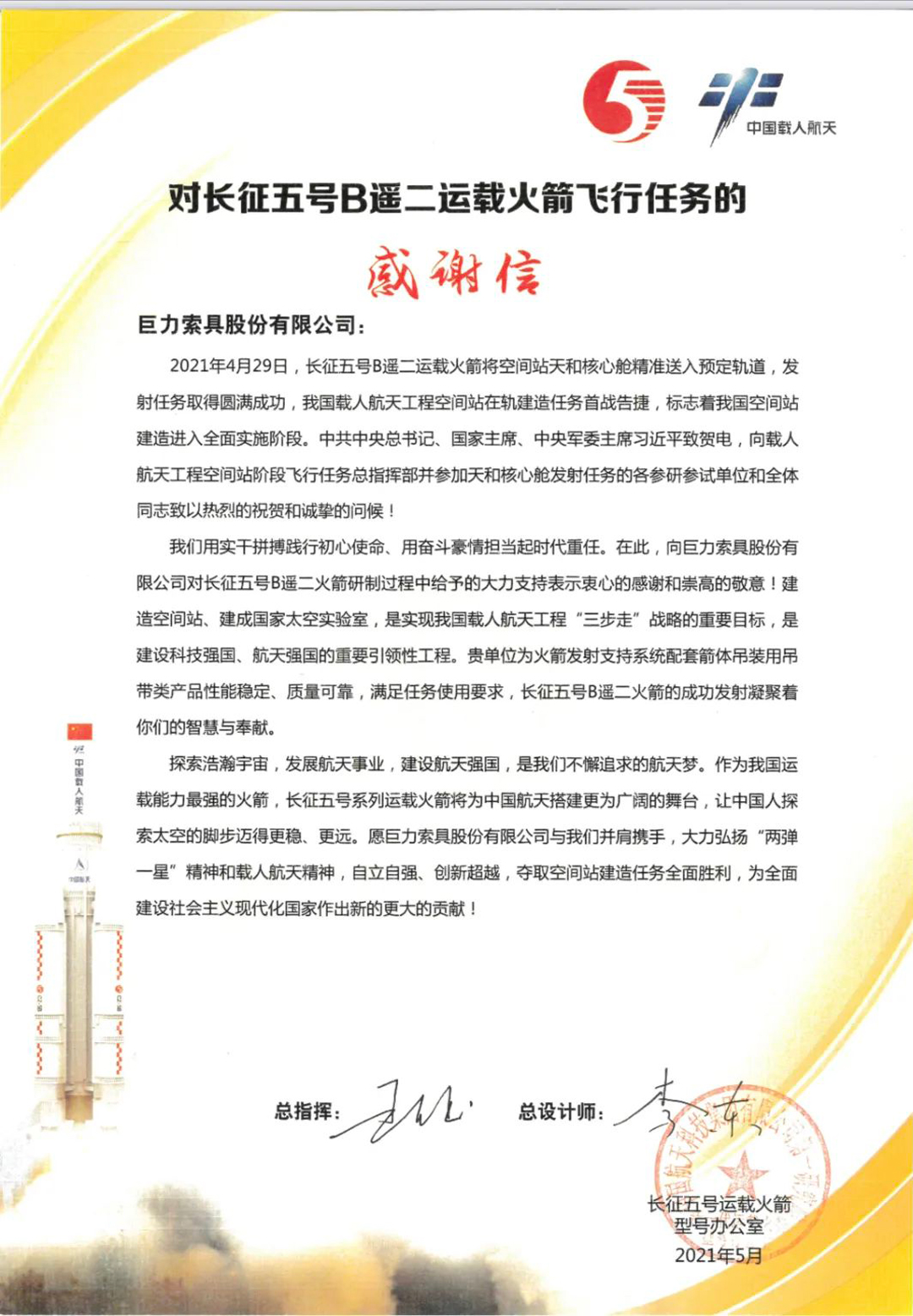 座談會(huì)上,雙方就航天產(chǎn)品的吊裝方案、未來(lái)大型火箭的吊裝、吊具的通用化設(shè)計(jì)以及無(wú)吊點(diǎn)吊裝等智能化設(shè)備進(jìn)行討論。巨力索具憑借多次為神舟飛船系列、嫦娥系列、長(zhǎng)征運(yùn)載火箭系列、天宮系列、天問(wèn)系列提供定制吊裝產(chǎn)品及吊裝方案的實(shí)踐經(jīng)驗(yàn)給予專(zhuān)業(yè)答復(fù)。首都航天表示感謝并對(duì)巨力索具在航天領(lǐng)域的專(zhuān)業(yè)性、創(chuàng)新性表示認(rèn)可。